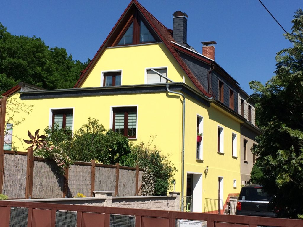 Zu verkaufen ist ein 616 m² großes Grundstück, bebaut mit einer unterkellerten Doppelhaushälfte aus dem Baujahr 1928 mit ca. 110 m² Wohnfläche, einem Gästehaus mit ca. 30 m² Nutzfläche sowie einem Pool, in traumhafter Lage, nur wenige Meter vom Weinberg Neufriedstein und der Sternwarte entfernt, oberhalb von Radebeul-West. Das Hauptgebäude, eine Doppelhaushälfte mit integrierter Garage, besteht aus Keller, Erd- und Obergeschoss/Dachgeschoss. Aktuell sind die Doppelhaushälfte sowie das Gästehaus vermietet. Die jährliche Mieteinnahme beträgt für die Doppelhaushälfte 8.440,32 EUR sowie 3.600,00 EUR für das Gästehaus.